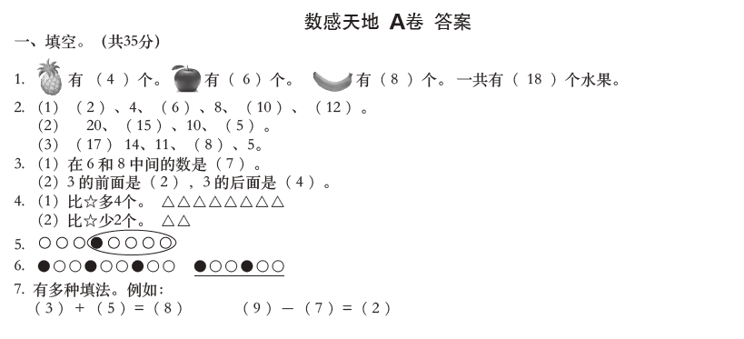 數(shù)感天地(dì)A卷--一(yī÷ ®∑)上(shàng)