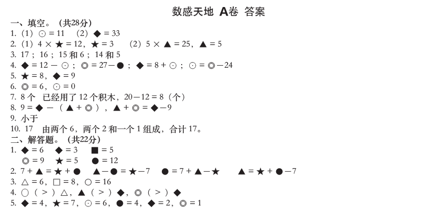 數(shù)感天地(dì)A卷--一(yī)下(xià)↕§