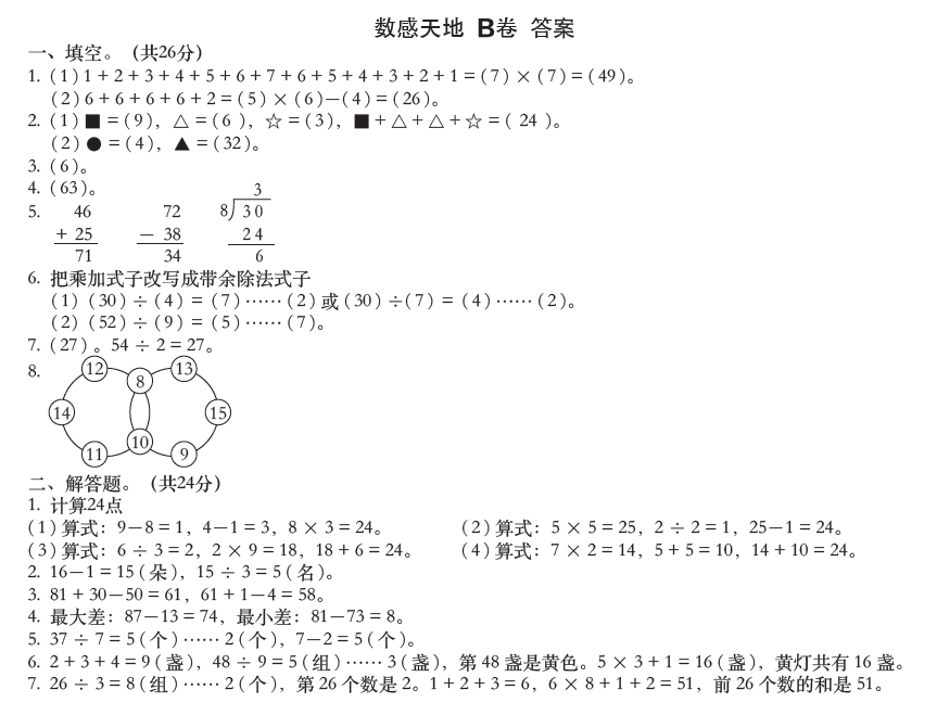 數(shù)感天地(dì)A卷--二上(shàng)γ¥