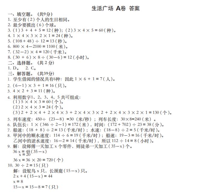 生(shēng)活廣場(chǎng)A卷--四下(xià)