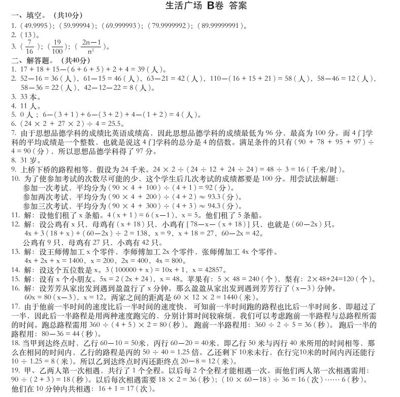 生(shēng)活廣場(chǎng)B卷--五上(s♣φβhàng)