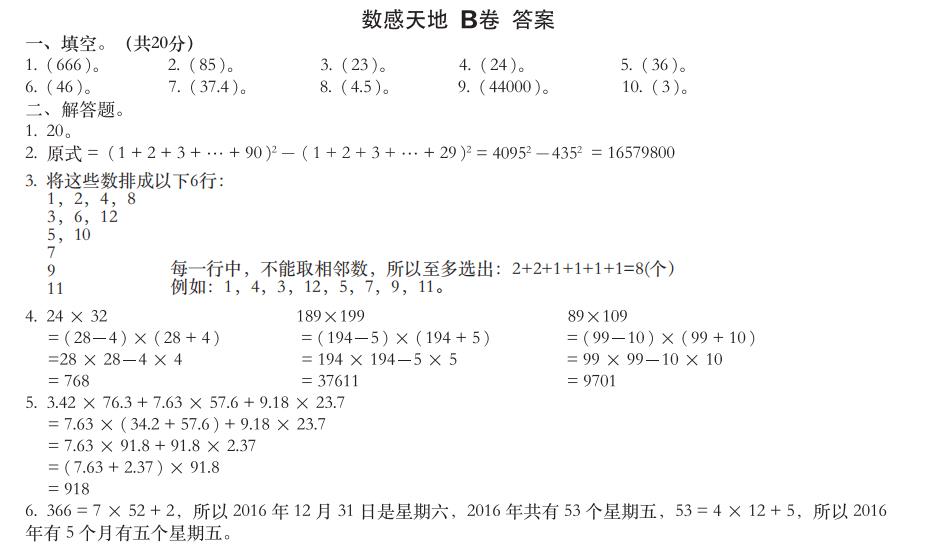 《智慧數(shù)學》整理(lǐ)與提高(gāo☆÷≥)答(dá)案