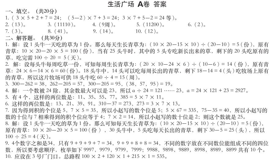 生(shēng)活廣場(chǎng)A卷--五下(xià)
