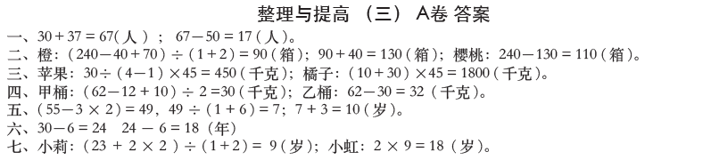 整理(lǐ)與提高(gāo)(三)A卷--三上(shàng)