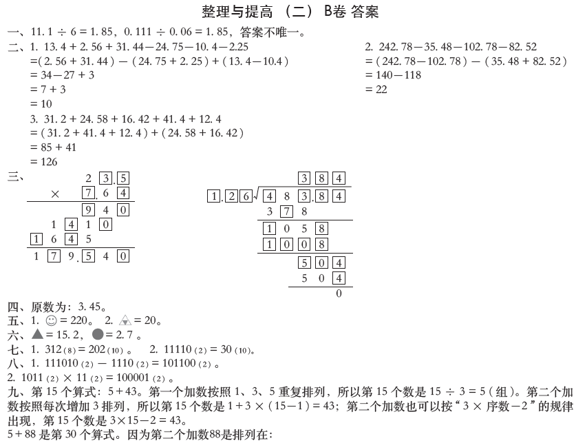 整理(lǐ)與提高(gāo)(二)B卷--五上(shàng)