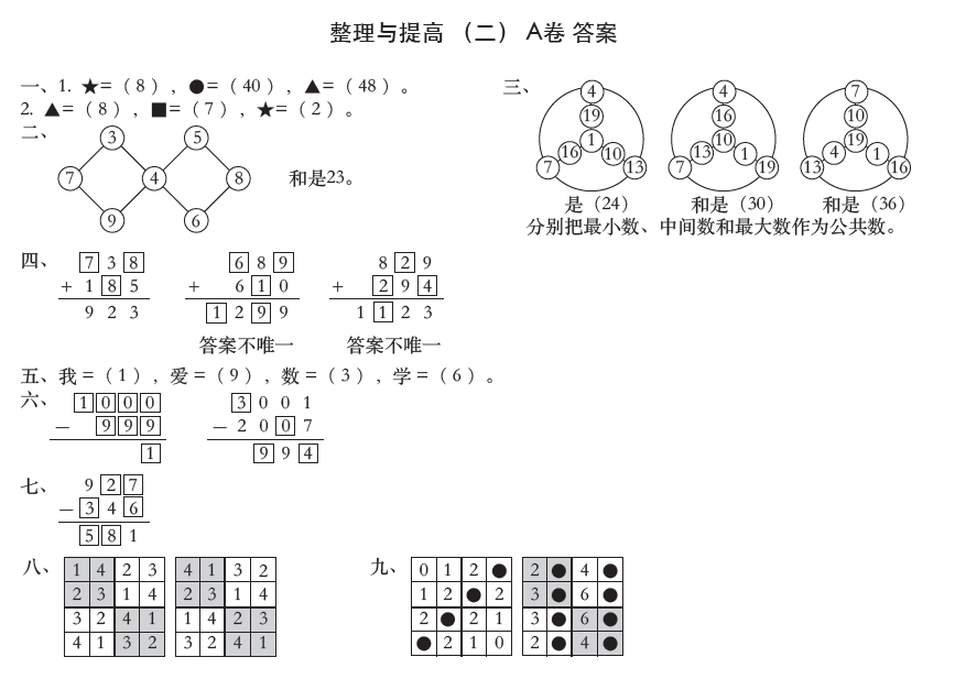 整理(lǐ)與提高(gāo)(二)A卷--二下(xià)