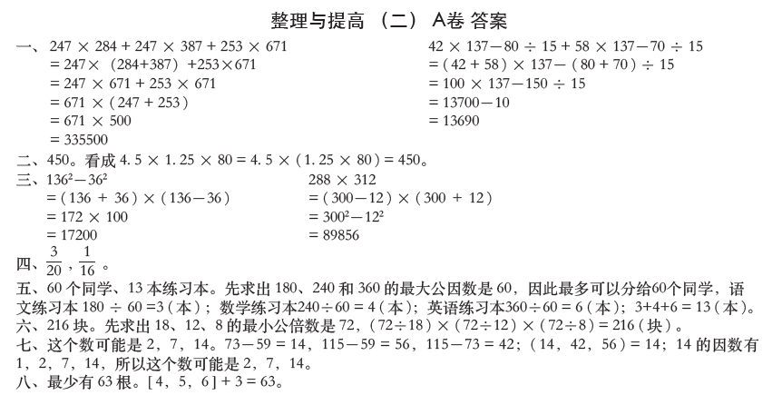 整理(lǐ)與提高(gāo)(二)A卷--五下(xià)