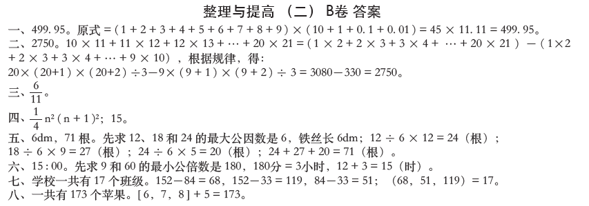整理(lǐ)與提高(gāo)(二)B卷--五下(xià)