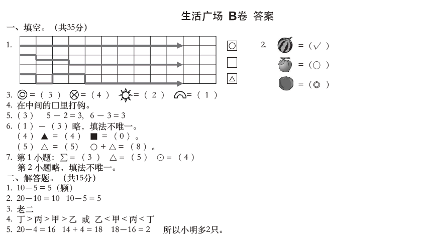 生(shēng)活廣場(chǎng)B卷--一(yī)上(shàn ±g)