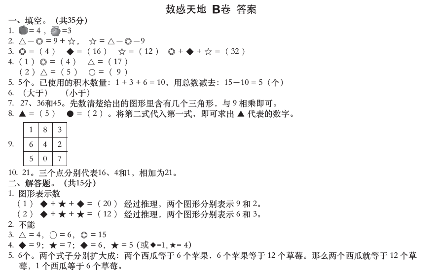 數(shù)感天地(dì)B卷--一(yī)下(xià)