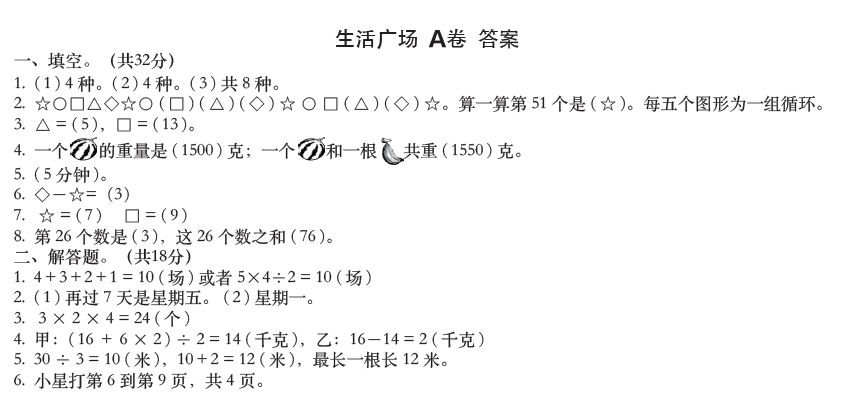 生(shēng)活廣場(chǎng)A卷® ♥®--二上(shàng)