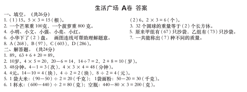 生(shēng)活廣場(chǎng)A卷--二•♦™下(xià)