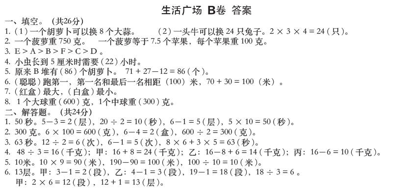 生(shēng)活廣場(chǎng)B卷--'γ二下(xià)