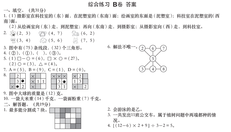 《智慧數(shù)學》配套練習(xí)冊答(♥<dá)案