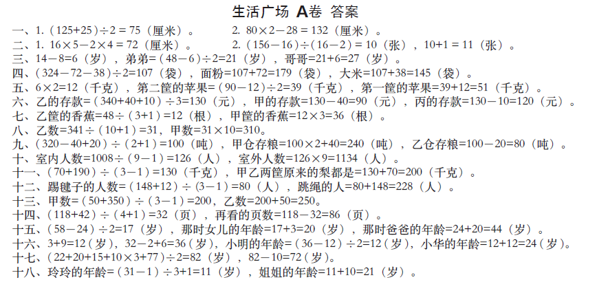 生(shēng)活廣場(chǎng)A卷--三上(shàng)