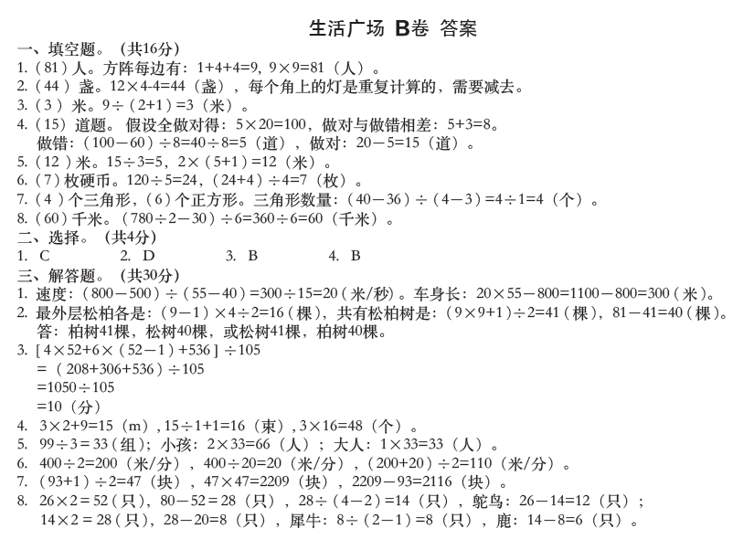生(shēng)活廣場(chǎng)B卷--三下(xià)