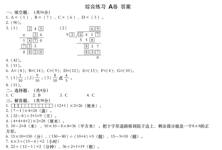 綜合練習(xí)A卷--三下(xià)