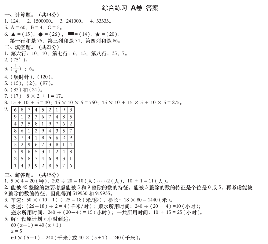 《智慧數(shù)學》配套練習(xí)冊答✘φ(dá)案