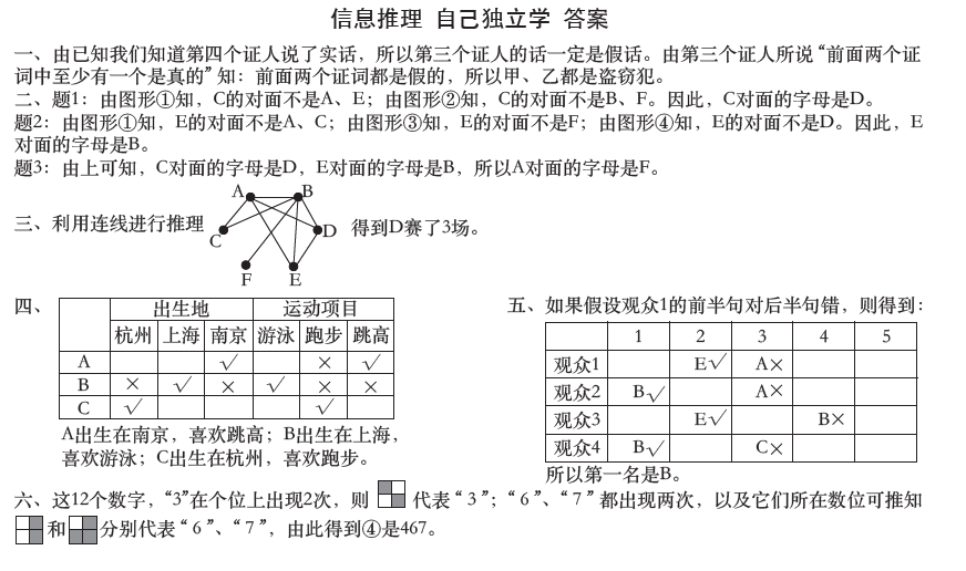 《智慧數(shù)學》自(zì)己獨立學答(dá) ±案