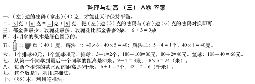 整理(lǐ)與提高(gāo)(三)A卷--二下(xià)