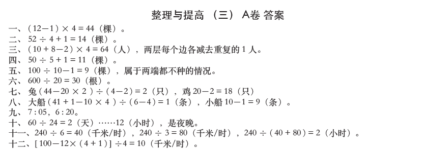 整理(lǐ)與提高(gāo)(三)A卷--三下(xià)