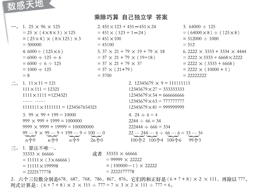《智慧數(shù)學》配套練習(xí)冊答(dá)案