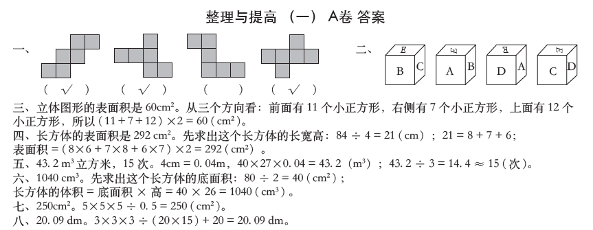 整理(lǐ)與提高(gāo)(一(yī))A卷--五下α♥(xià)