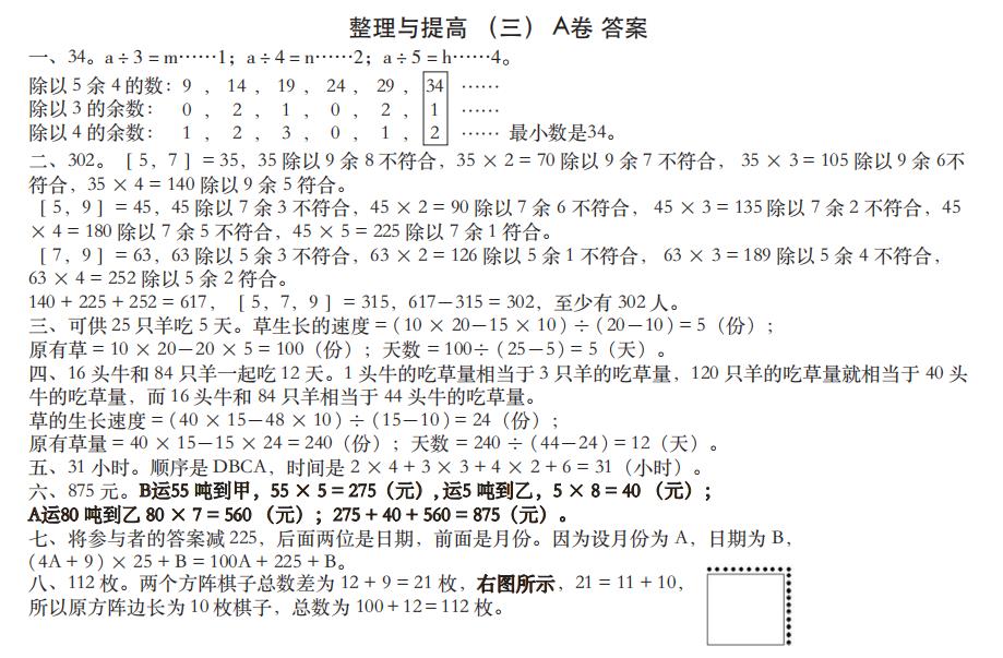 《智慧數(shù)學》整理(lǐ)與提高(gāo)答(dá)案